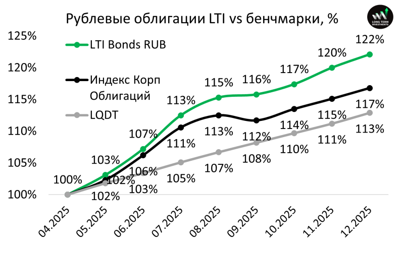 В этом разделе собрана информация об облигациях. Для подписчиков доступно два модельных портфеля облигаций – рублевый и валютный, их историческая динамика приведена выше. Модельные портфели собраны так, чтобы они в среднем давали более высокую доходность, чем депозиты, фонды денежного рынка или ОФЗ, но сохраняли минимальный уровень риска. Целевая альфа 3-5%+ к бенчмаркам. Информация носит исключительно информационный характер и не является инвестиционной рекомендацией.
